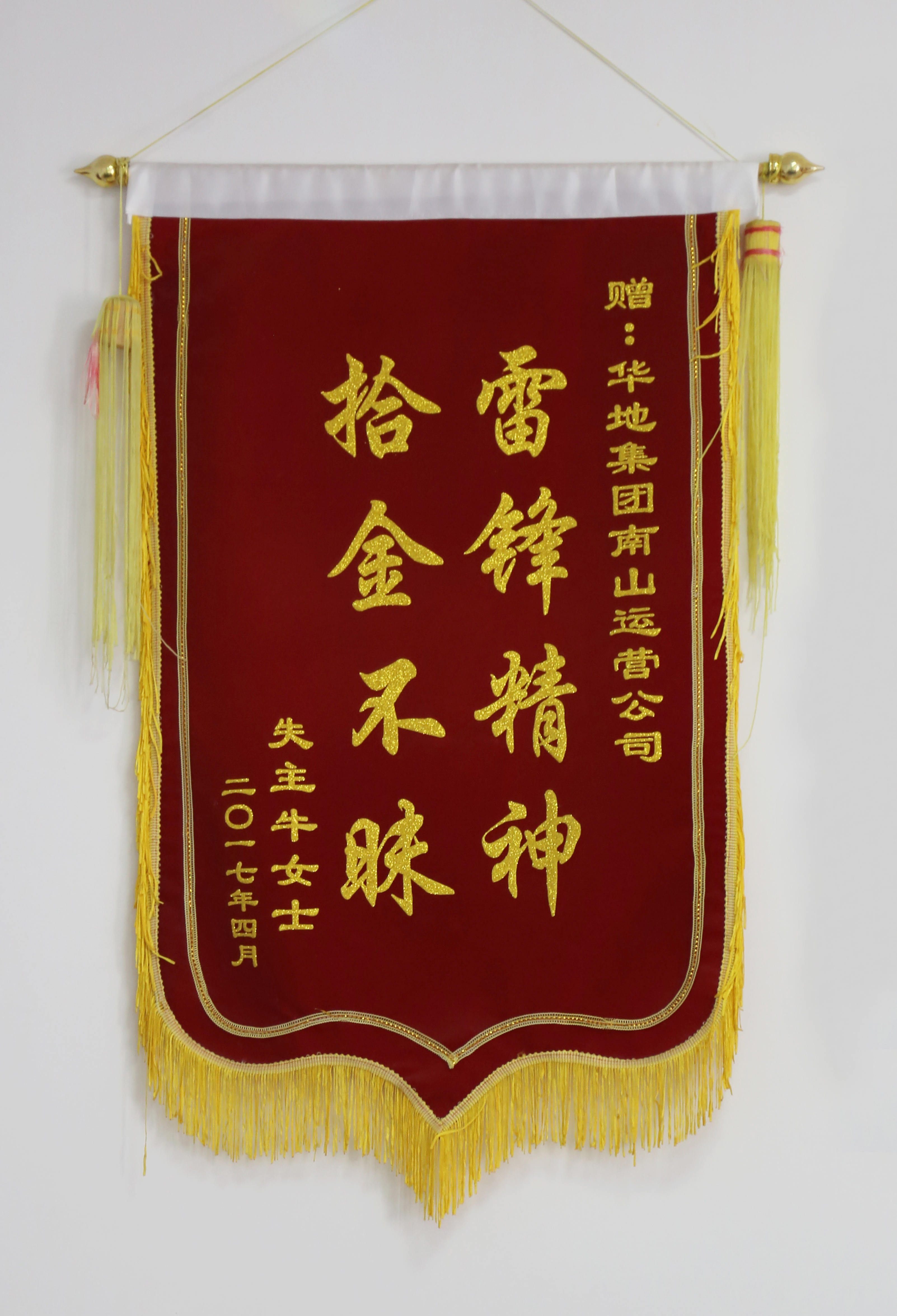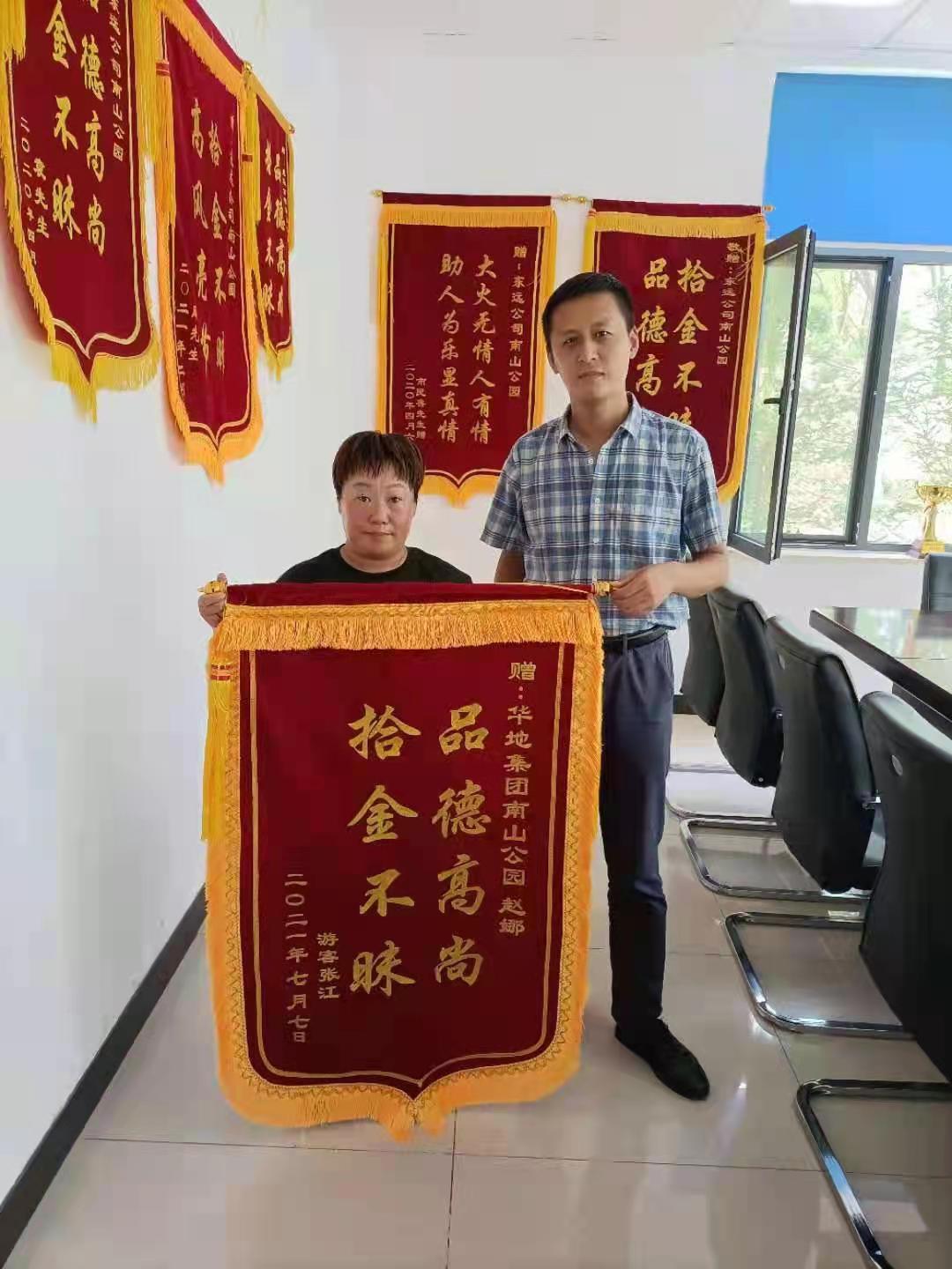 遺失物品登記本上登記著無數(shù)條記錄,身份證、鑰匙、包、手機、錢等等。那里也記錄了我們所有工作人員365天堅守崗位的執(zhí)著與延續(xù)的雷鋒精神。在那會議室墻面上掛著的一面面錦旗承載了市民對于我們?nèi)A地集團東遠人的一份感恩、一份贊許、一份鼓勵。他們用實際行動踐行了作為南山公園守護者的責任與擔當。